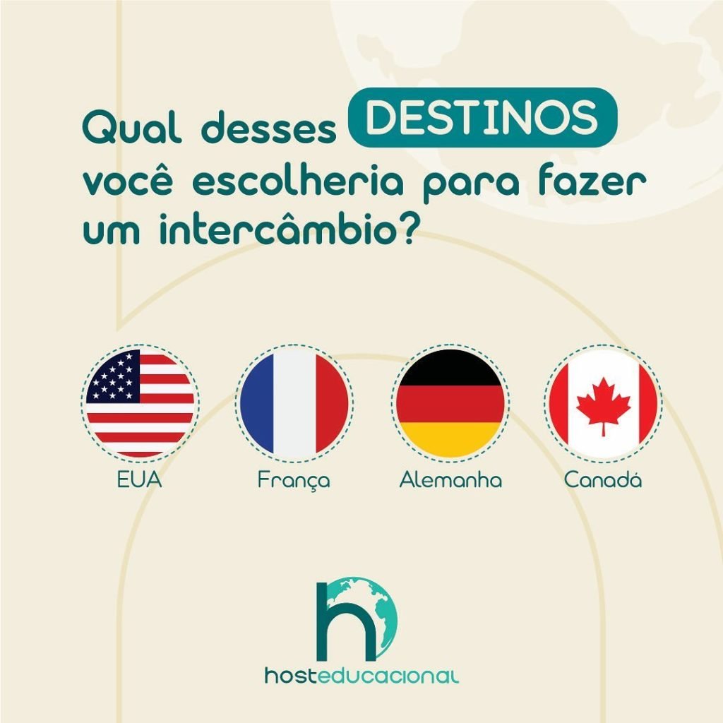 Escolher um destino para o intercâmbio é como selecionar um capítulo emocionante para a sua história de vida! 🌍✈️🧳 Qual desses destinos incríveis você escolheria para essa aventura internacional?